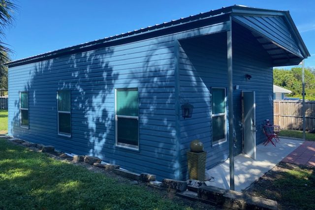Allen in Lake Worth, Florida contacted Eversafe about a unique office steel building project he wanted to design. Since he spends a lot of time making the commute to an office, he wanted to build one in his backyard.